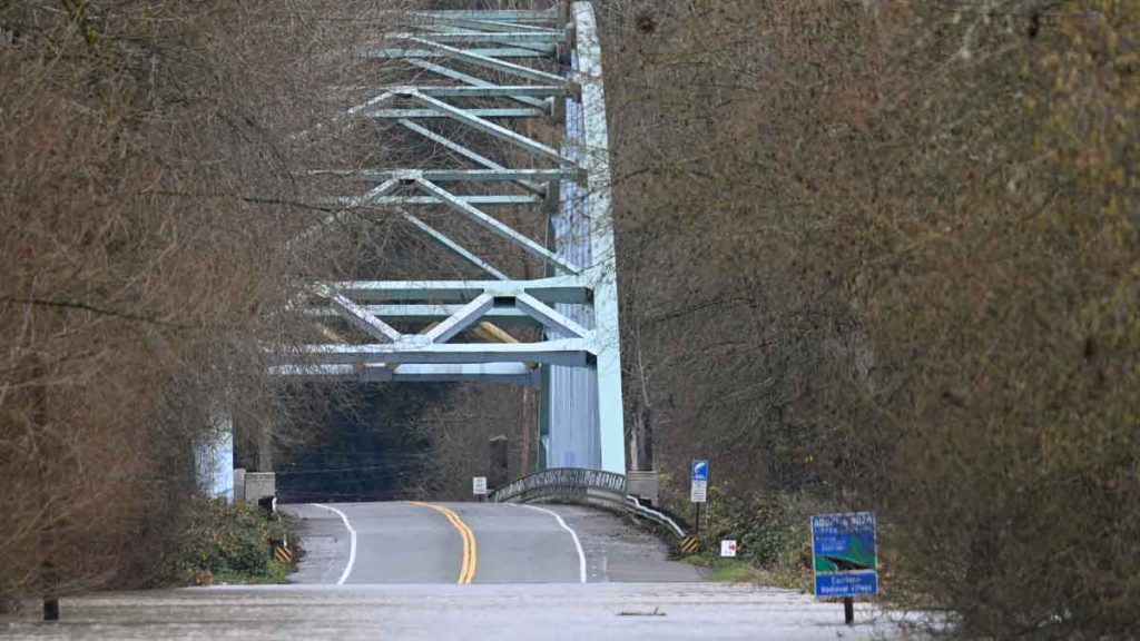 At NE 124th Street, the Novelty Bridge was flooded, with local residents saying they had never seen the river so high. On the west side of the bridge, the floodwaters were less than 50 feet from W Snoqualmie Valley Road NE.