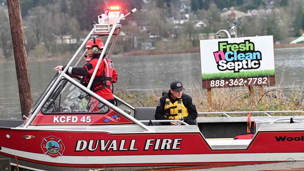 Local fire departments, supported by King County, the State of Washington, and the National Guard, carried out technical rescues of stranded residents throughout the day. In Duvall, a helicopter with the King County Sheriff’s Department repeatedly flew overhead, following the river.